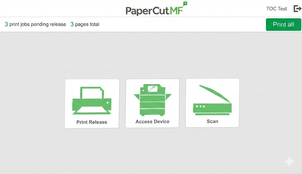 - Once signed in, click Print All to release all print jobs or select the Print Release button to select specific jobs